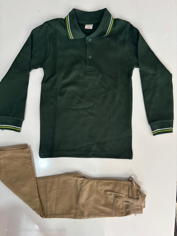 Erkek veya kız fark etmeksizin pantolon standart bej olacaktır. Üst giyim kısa veya uzun kollu yeşil renktir.